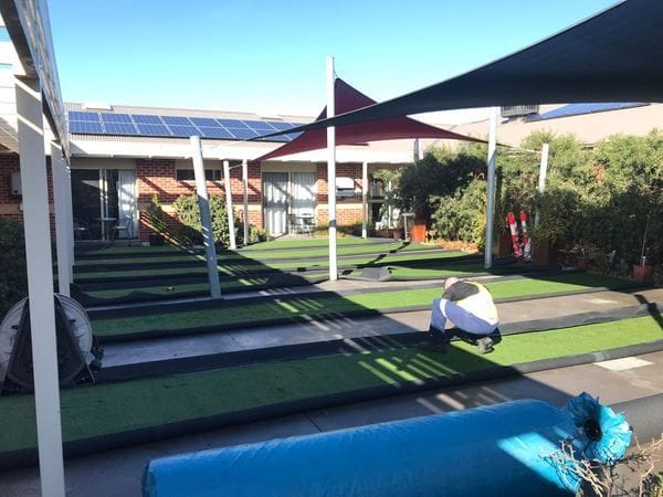 Synthetic Grass at Bupa Aged Care FacilityWritten on the 2 August 2018 Our team recently helped convert a dated looking outdoor area at a Bupa Aged Care Facility in Melbourne into an eye catching space using our premium synthetic turf. This was a simple, yet effective, transformation using the existing tired concrete as the base to install our synthetic turf. Click here to view more examples of our commercial synthetic grass projects.